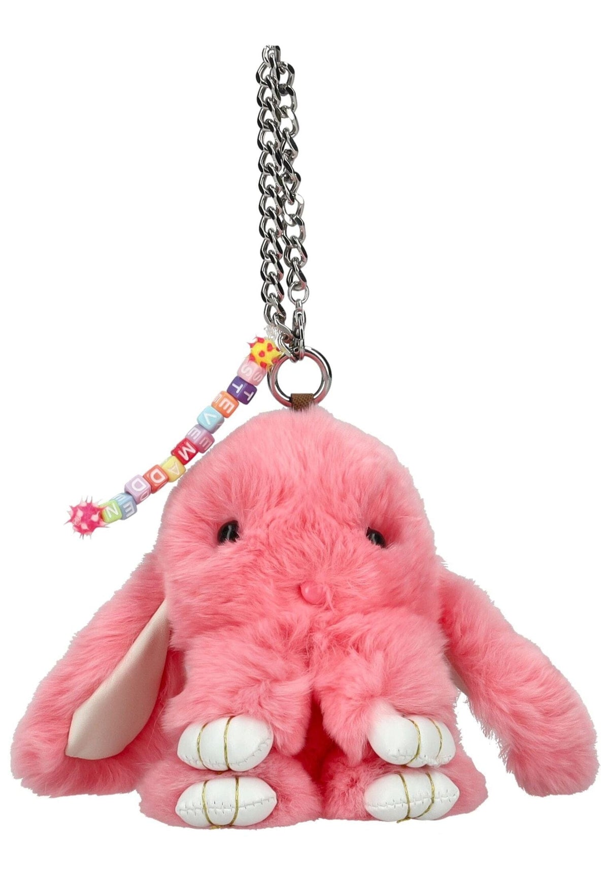 Dieser kuschelige Schlüsselanhänger überzeugt mit seinem flauschigen Design und liebevollen Details. Die weiche Plüschoberfläche sorgt für eine angenehme Haptik, während die niedliche Form und die kleinen Pfoten einen verspielten Akzent setzen. Dank der stabilen Metallkette und des Schlüsselrings lässt sich der Anhänger sicher an Taschen, Rucksäcken oder Schlüsseln befestigen. Ein dekoratives Perlenband mit dem Steve Madden Schriftzug verleiht dem Accessoire eine individuelle Note. Ideal als modisches Detail, kleines Geschenk oder süßer Begleiter für unterwegs.