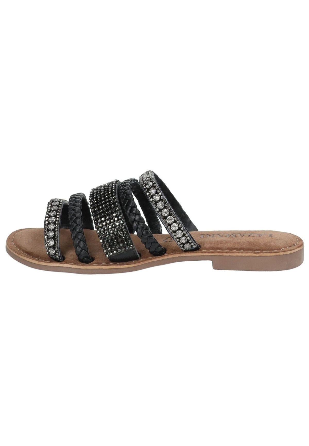 Lazamani Pantoletten Leder/Textil Schwarz/Gold