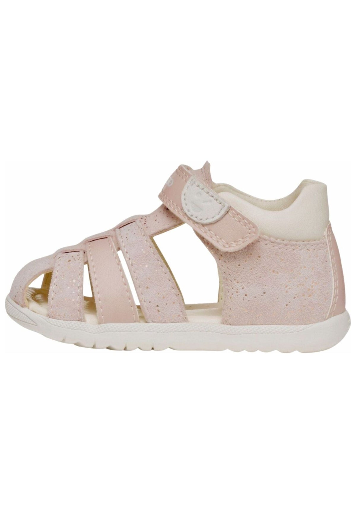 Perfekt für die schöne Frühlings- und Sommerzeit präsentiert Geox eine süße Sandale mit tollen Cut-Outs. Der Klettverschluss sorgt für einen optimalen Halt und eine perfekte Passform. Zudem werden die Füße Ihrer Liebsten gestützt durch eine Zehen-und Fersenkappe, die für einen hohen Tragekomfort sorgt.