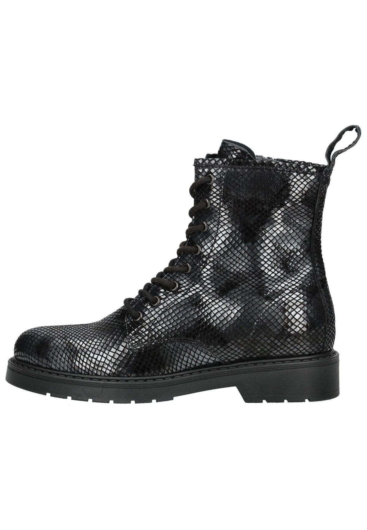 Mit der modernen und praktischen Schnürstiefelette von Nero Giardini, die sowohl mit Reißverschluss als auch mit Schnürung ausgestattet ist, gehen Sie trendig durch den Tag. Der alltagstaugliche Schuh vereint hochwertiges Leder mit einer robusten Profilsohle. Die Reptilienoptik sorgt für das gewisse Etwas. Das Wechselfußbett bietet zusätzlichen Komfort.
