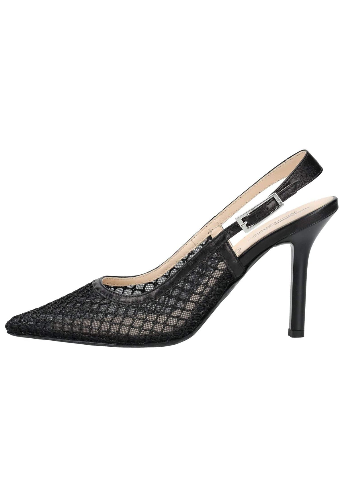 Dieser elegante High Heel Pumps von Nero Giardini setzt mit seinem modernen Netzdesign einen stilvollen Akzent. Das fein gearbeitete Obermaterial in transparenter Mesh-Optik verleiht dem Schuh eine besondere Leichtigkeit und sorgt gleichzeitig für einen aufregenden, femininen Look. Die spitze Form unterstreicht die elegante Silhouette, während der hohe Stiletto-Absatz das Bein optisch streckt und für einen glamourösen Auftritt sorgt. Der verstellbare Fersenriemen mit Schnalle bietet sicheren Halt und rundet das Design harmonisch ab. Ein perfektes Modell für festliche Anlässe oder elegante Abend-Outfits.