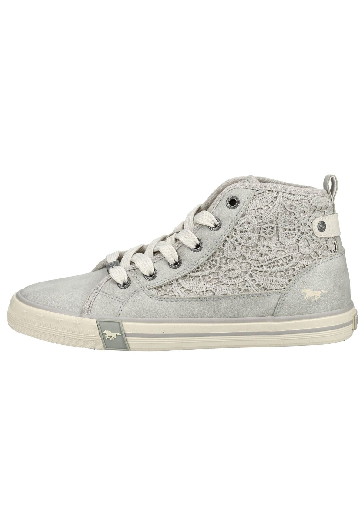 Der Mustang Sneaker überzeugt mit sportivem Design und dekorativen Spitzendetails. Die Schnürung sorgt für eine angenehme Passform, während der knöchelhohe Schnitt zusätzlichen Halt bietet. Die robuste Laufsohle macht das Modell zu einem bequemen Begleiter für Alltag und Freizeit.