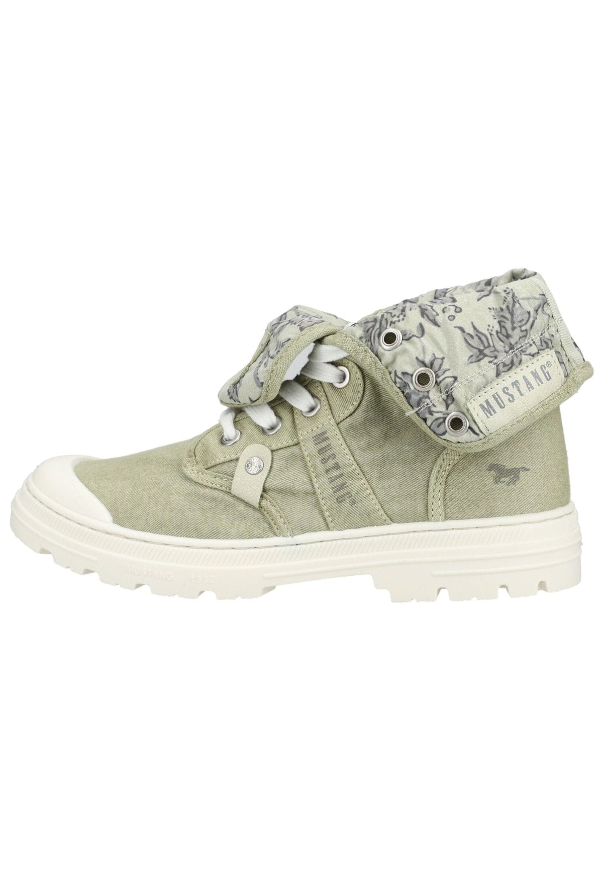 Der Sneaker von Mustang überzeugt mit lässigem Design und hohem Tragekomfort. Das Modell punktet mit einem dekorativen Innenfutter mit floralem Muster, das für einen besonderen Akzent sorgt. Besonders vielseitig: Der Schaft kann – wie auf dem Bild – lässig heruntergeklappt getragen werden oder bis nach oben hochgeklappt und fest zugeschnürt werden, sodass zwei unterschiedliche Looks entstehen. Ein seitliches Logo-Detail sowie der charakteristische Markenpatch am Schaft unterstreichen den authentischen Stil. Die robuste, profilierte Laufsohle bietet guten Halt im Alltag, während das angenehme Obermaterial und die bequeme Passform für ein rundum komfortables Tragegefühl sorgen. Ob zur Jeans, Stoffhose oder zum Rock – dieser Mustang Sneaker ergänzt vielseitige Casual-Outfits mit einer modernen, sportiven Note.