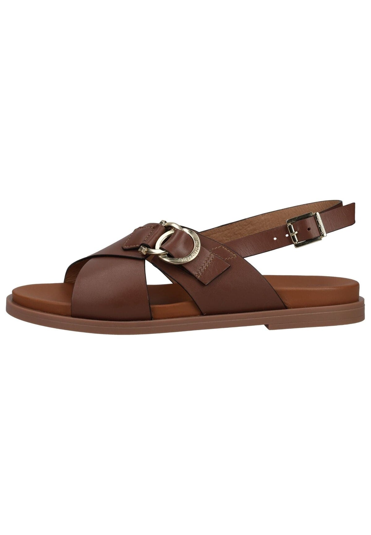 Diese stilvolle Sandale von NeroGiardini überzeugt mit einer harmonischen Verbindung aus modernem Design und hohem Tragekomfort. Die breiten, weich verarbeiteten Riemen schmiegen sich angenehm an den Fuß und sorgen gemeinsam mit dem verstellbaren Fersenriemen für einen sicheren Halt. Ein dekoratives Metallelement setzt einen edlen Akzent und verleiht dem Modell eine elegante Ausstrahlung, die vielseitig kombinierbar ist. Die sanft gepolsterte Innensohle unterstützt ein komfortables Laufgefühl und macht die Sandale zu einem idealen Begleiter für lange Sommertage. Dank der flexiblen Laufsohle genießen Sie Stabilität und Leichtigkeit bei jedem Schritt. Die hochwertige Verarbeitung und das zeitlose Erscheinungsbild machen dieses Modell zur perfekten Wahl für stilbewusste Frauen, die Wert auf Qualität und Bequemlichkeit legen. Ob im Alltag, im Büro oder zu besonderen Anlässen – diese Sandale rundet jedes Outfit geschmackvoll ab.