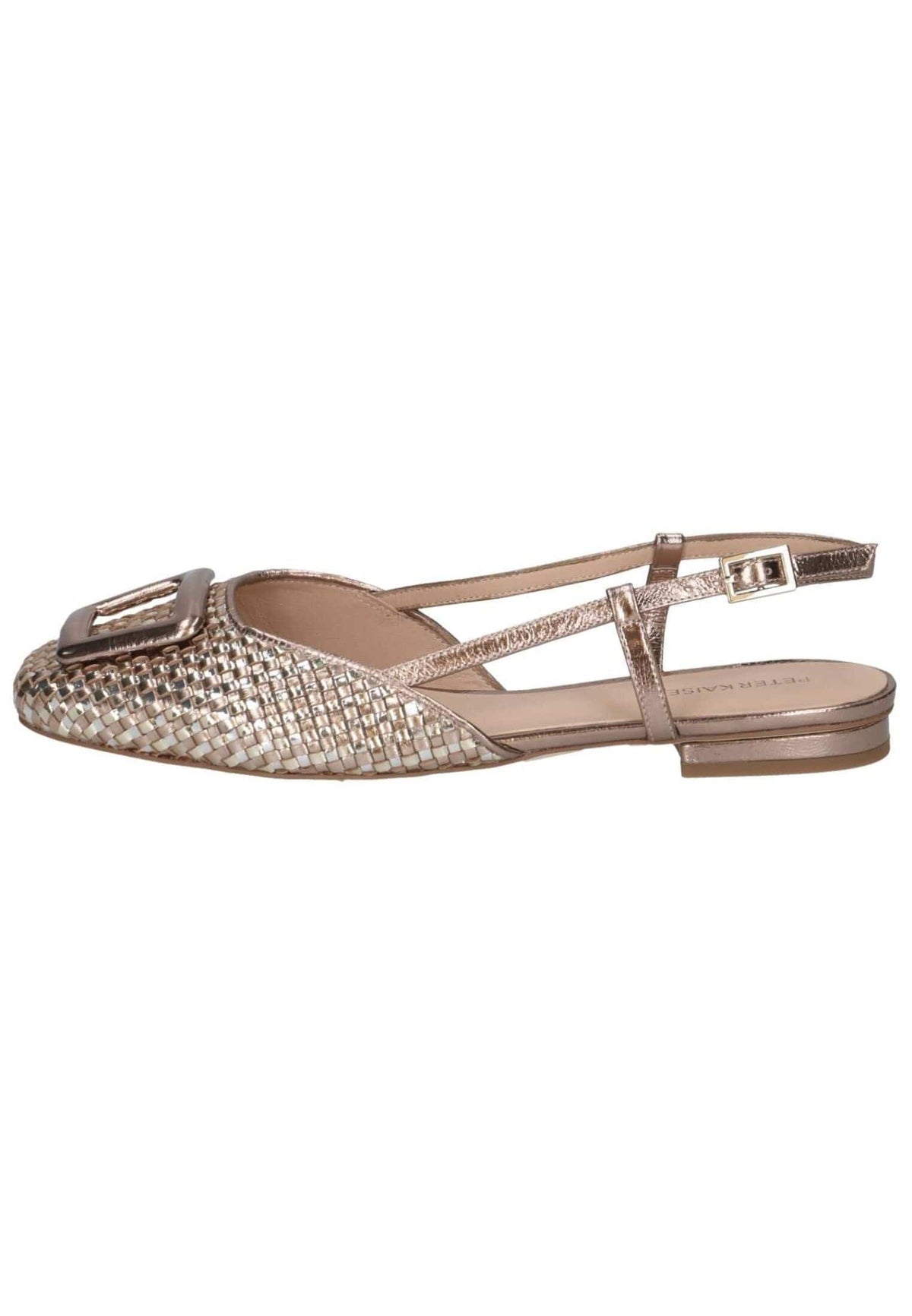 Diese Sling-Ballerina von Peter Kaiser vereint feminine Leichtigkeit mit stilvoller Raffinesse. Die fein strukturierte Oberfläche verleiht dem Modell eine edle Ausstrahlung, während das dekorative Schmuckelement auf dem Vorderblatt einen markanten Akzent setzt. Zarte Riemen mit verstellbarer Schließe sorgen für einen sicheren Halt und unterstreichen die elegante Silhouette. Der flache Absatz bietet angenehmen Tragekomfort und macht den Schuh zum idealen Begleiter für anspruchsvolle Alltagslooks oder besondere Anlässe.
